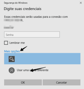 Caso apareça algum outro nome de usuário pré preenchido como no exemplo abaixo clique em  Mais opções -> Usar uma conta diferente.